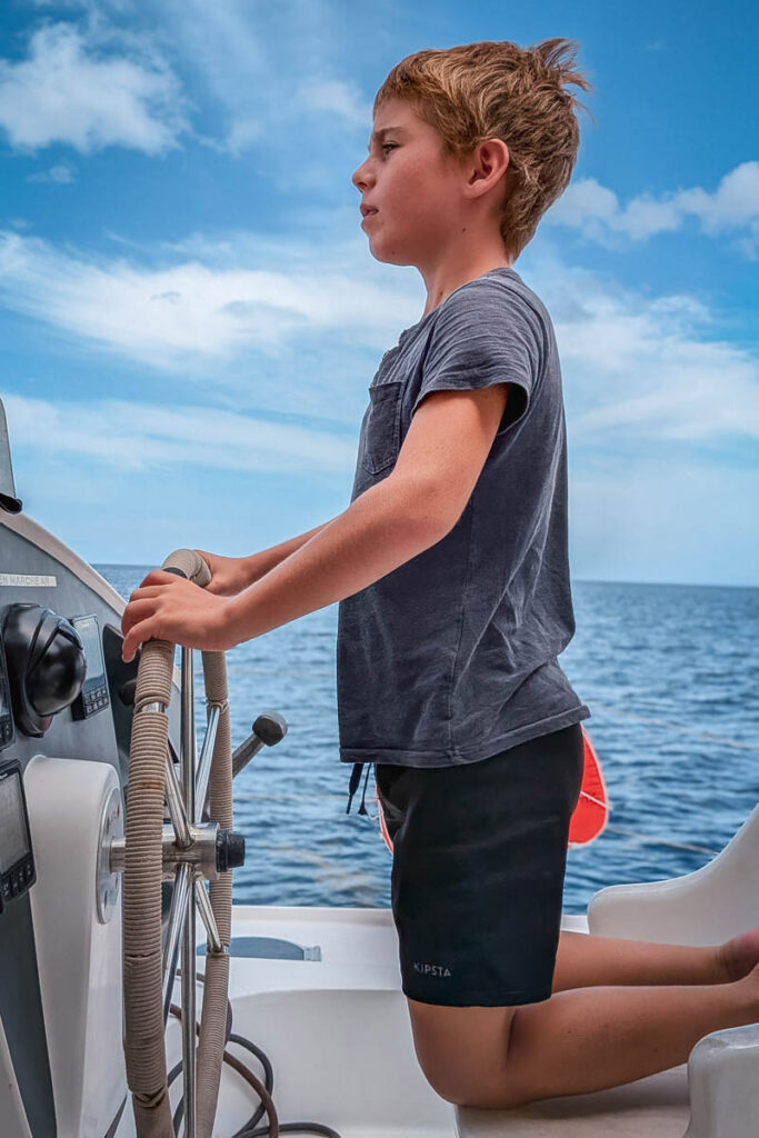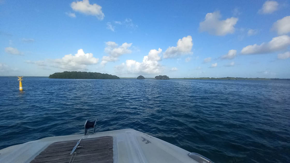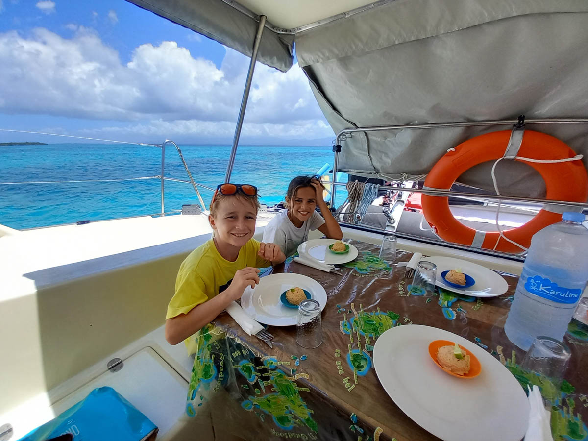 Repas devant l'ilet Fajou à bord d'Azimut